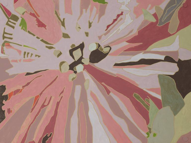 One in a series of abstract botanicals, this piece is done in casein* paint on heavy (400 lb.), cold press watercolor paper. The underlying sketch is done in pencil and the painting is finished with a buffed cold wax varnish. Unframed. The painting covers the entire deckle-edge paper - edge to edge...