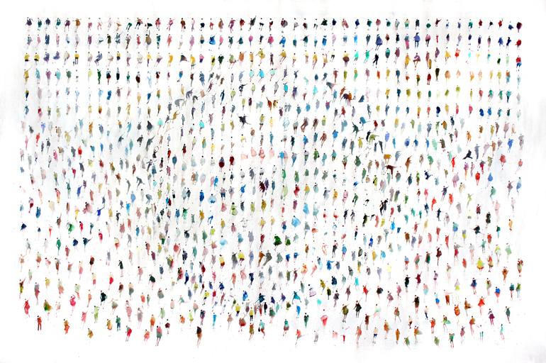 Juana Céspedes (Seville, 1959) is a self-taught artist based in Barcelona. For 30 years, Juana has honed her skill for water-based techniques like watercolor and ink on canvas, watercolor paper, and rice or Japanese paper. Her work has been shown in over 60 exhibitions and awarded by Fundació Vila Casas and Fundació Barcelona Olímpica, among other prestigious institutions. She participates yearly in The Other Art Fair in LA. Inspired by dance and music-filled plazas of Barcelona, Juana’s work seeks to capture the flow of urban life and how we fashion our individual identities in a collective. Each piece is set in an imaginary place, inviting our minds to wonder and meander, from character to character, stumbling upon previously unnoticed details and life-filled scenes. As an outsider to the art world, Juana often describes her journey as one of playful discovery. She always followed her instinct which led her to create colorful and whimsical interpretations of our everyday. A calming and delightful view the artist hopes will offer a pause from our fast-moving lives. Don't hesitate to enquire about other pieces beyond the selection you see here, as well as commissioned work.