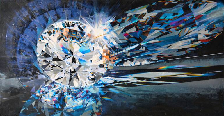 Diamond Shatter on Black - Image #214 as its name implies, appears to explode on the canvas. Particularly when taking some of the facets into the background. Kearns introduces some iridescent acrylic into the work which tend to give the subject a changing and different effect when viewed from anoth...