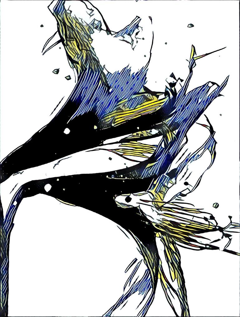 Digital Blue is a digital artwork form an original watercolour by Diane White in lovely blue and yellow tones.
