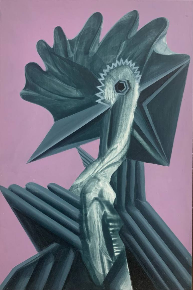 Roberto Chessa, born in Nuoro in 1978, is an artist, painter and professional breakdancer. Ever since his adolescence he took an interest in painting, following his father’s footsteps. His love for art continued through the years: he attended the Art Institute and the Academy of Arts in Sassari, Italy. At the same time he approached the Hip Hop culture thanks to many graffiti in his hometown and the movements of boys breakdancing on cardboard. He learned the basic steps by himself and in ’93 moved to Sassari where he established the Sirbones Crew, achieving remarkable results in Italy and abroad. From 2011 until 2015 he lived in London where he kept on dancing and painting. He then got back to Sardinia to attend a painting school by Giovanni Manunta, known as Pastorello. This experience changed his painting radically. He currently lives in Sassari where he carries out his artistic research and teaches the Hip Hop culture to young generations. Painting remains his main activity, a constant aesthetic investigation that grows through geometric paintings with strong visual impact. His painting, apparently abstract, develops from his imaginary Hip Hop. Breakdancer, writer, painter, all this is summarized with a constructivism art. His paintings look like crystallized explosions of colors, elevated shapes, sharp vertexes that try to reach the sky. Shapes of juxtaposed and pleasant colors that seem perfect to be concrete sculptures, futuristic lighthouses. We always come back to the street. Roberto Chessa’s painting is harmless at the first sight, thanks to its pastel colors but it shows a sharpened, powerful and ambitious side. It is a painting that wants to exist, to expand and to be real.