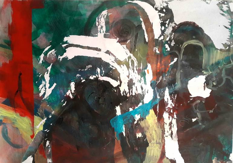 Painting: Acrylic on paper with paper effects. Evocative subject