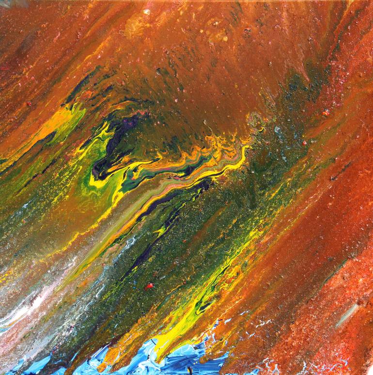 The muddled portions of color in this painting are like footsteps through the rough terrain. It might seem bleak when you're in the moment but once you take a step back and see how far you've come, you start to notice the lighted path of perseverance.