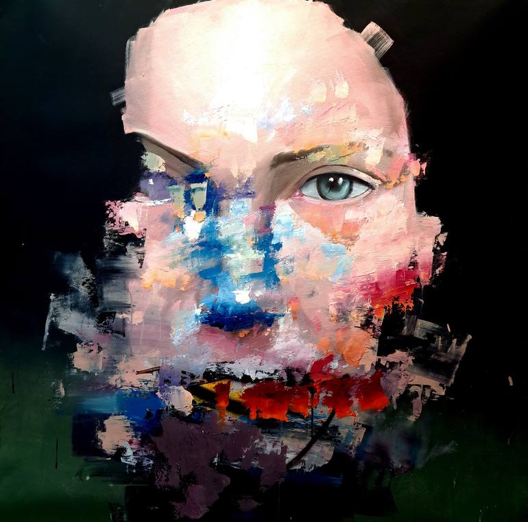 Distorted Color Model" 100x100cm Oil and acrylic on canvas 2018- 2025 "Chronicles of Impermanence Series" This series explores the dark side of identity and perception. Drawing from models, celebrities, and reinterpretations of classics, each piece becomes a deconstruction of faces and emotions, ...