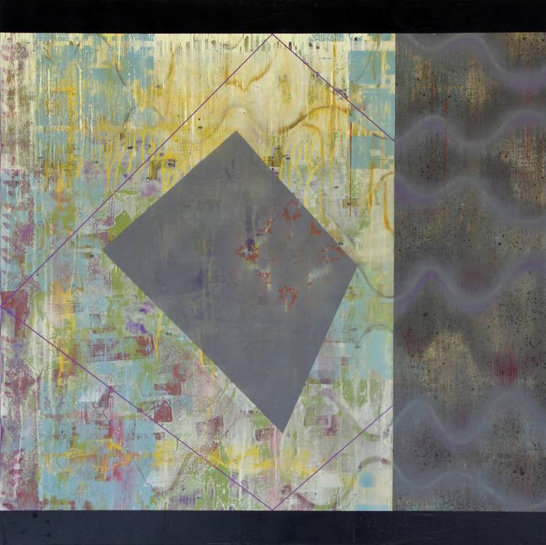 This painting comments on how we store, access and share information in a post-modern era, dependent on the use of information technology; and how we place increasing trust in Hyperreal experience of the world, rather than engaging with artefacts directly. The imagery references patterns, observed...