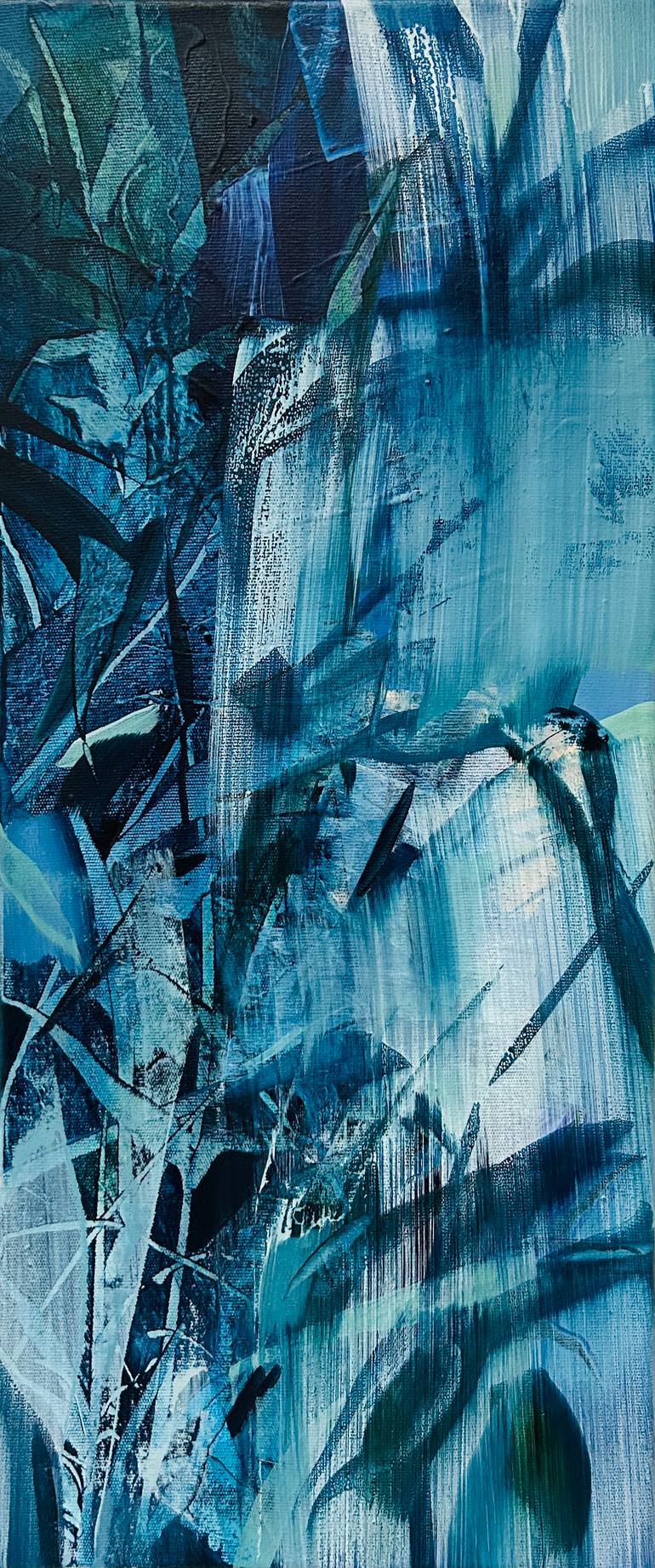 Divine Virtue is a delightful standing artwork in captivating blues and purples, evoking a sense of divine virtue and a tranquil night in a serene garden. Its spontaneous and intuitive brushstrokes, along with the calming deep colors, create a visually engaging experience. Crafted with layers of oi...
