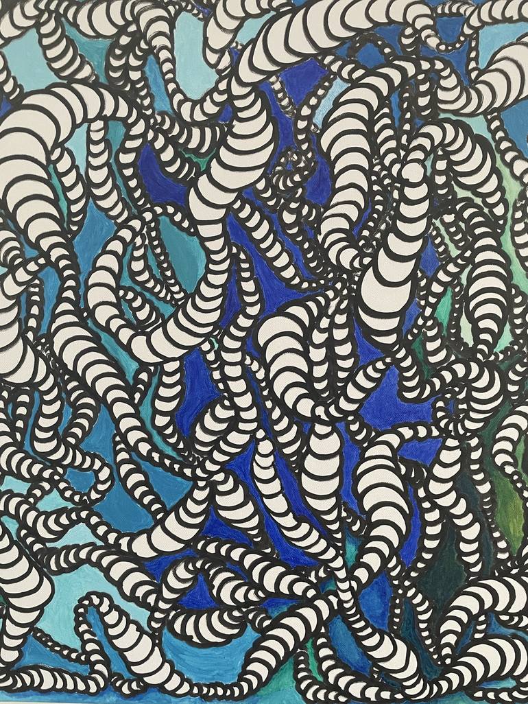 This picture is inspired by diving. In this work I conveyed the changing colors of water and the smooth movements of the diver through the use of a range from blue to green and multidirectional movements of white spirals. This work is an expression of my personal feeling of color of water. I created...