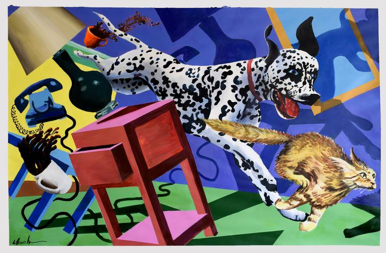 Dog Chasing Cat Painting