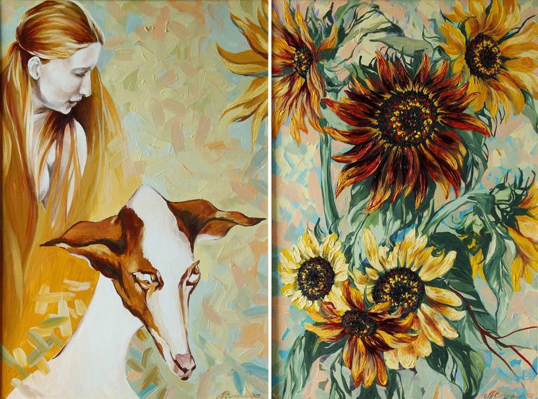 The picture is painted with a brush, oil paints on natural canvas. At a Dogshow in Moldova for the first time I saw an unusual breed of dog - Podenco Ibacenko. This dog was brought from Latvia. She became the Champion of the Exhibition. The dog and her mistress were combined in colors. It hit me. A ...