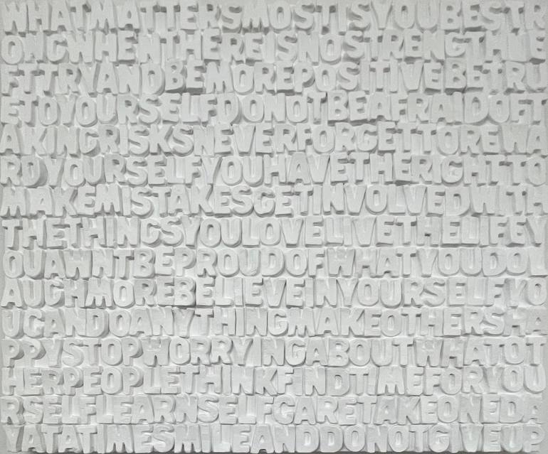Plaster of Paris letters hand made. Then composed on canvas and then painted in acrylic. Words taken from my own poetry book. This piece has sold but I can make a new one if yiou like it.