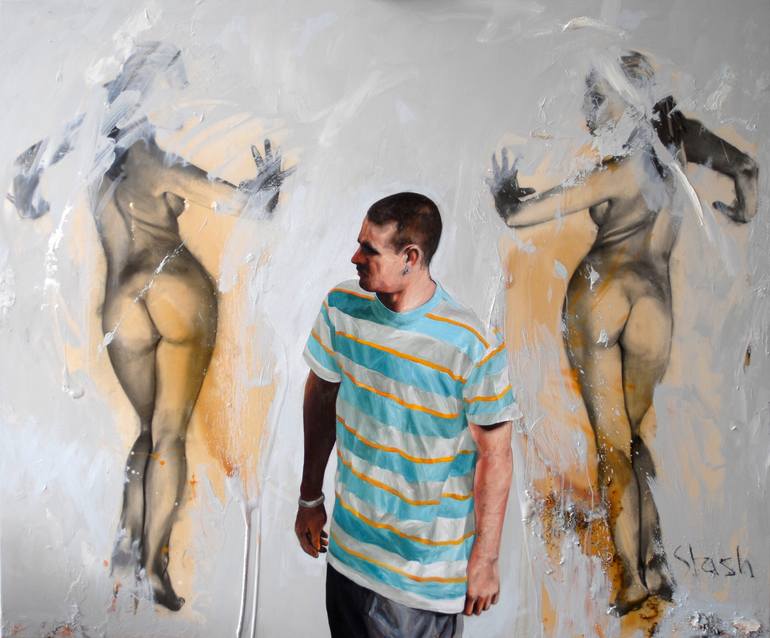 Oil painting on canvas. One of a series using the urban backdrop of the wall.