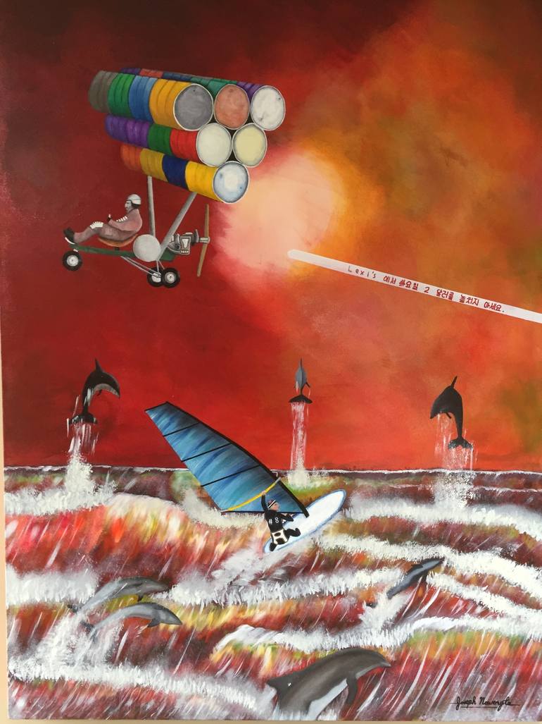 Oil painting on canvas with people and animals having fun. Could be interpreted lots of ways, use your imaginations.
