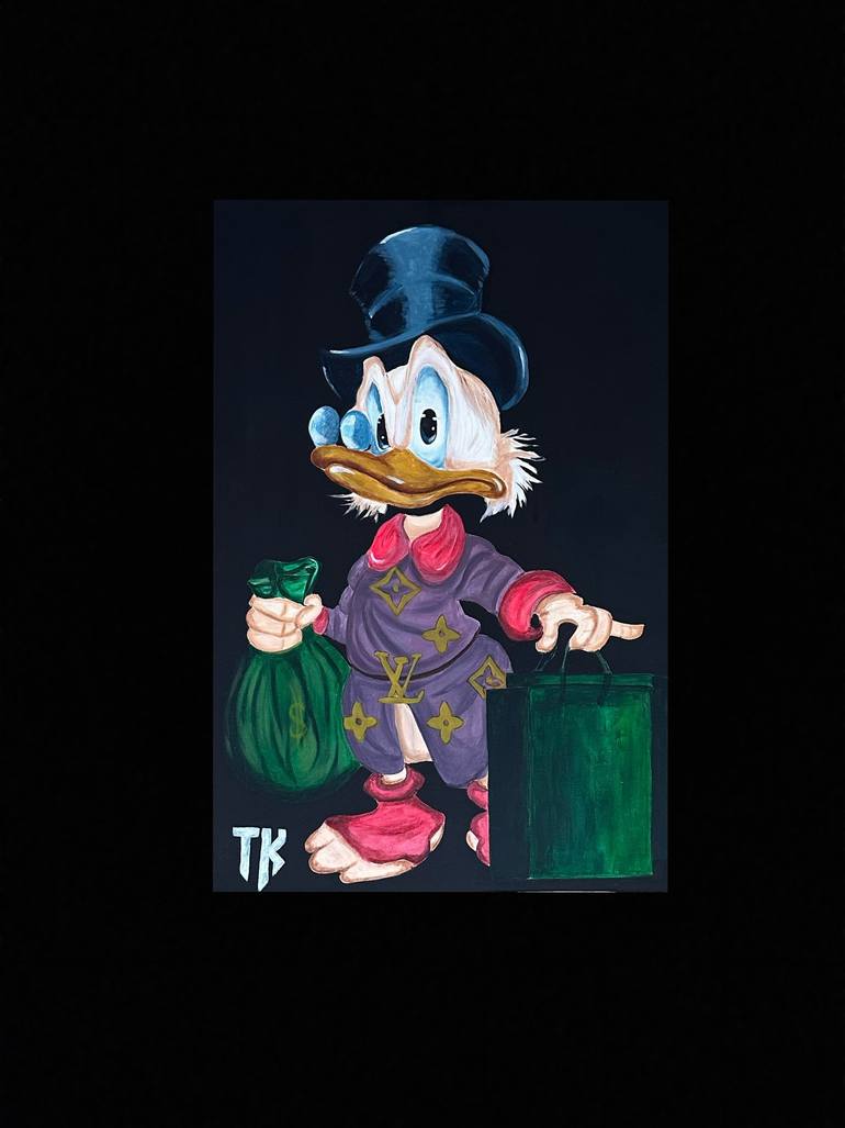 Witness the opulence of Rich Donald Duck, resplendent in the most exquisite Louis Vuitton garments, and flaunting a magnificent green-branded bag capable of displaying Rolex, Gucci, or even a personalized logo of your choosing. This masterpiece is meticulously crafted to elevate both your surroundin...