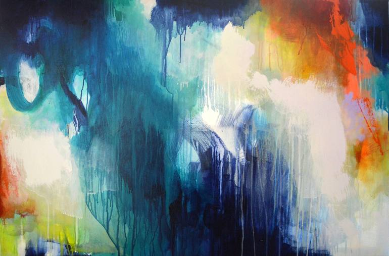 Original fine art acrylic painting on stretched canvas. STRETCHED ON WOODEN FRAME & READY TO HANG SIZE: 80 cm x 120 cm (31.5 inch x 47.25 inch), the canvas is 0,78 inch deep. A clear glossy coating has been applied to the surface to protect the painting from UV light, moisture and dust. Staples a...