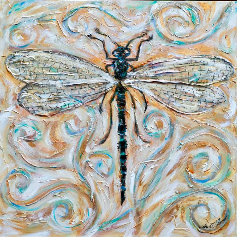 This painting is part of a series of Botanicals. I have also included other beneficial insects in this collection of expressionistic, textural paintings. I had carved the painting from modeling paste before I painted it. There are metallic gold and blue highlights that shine a bit.