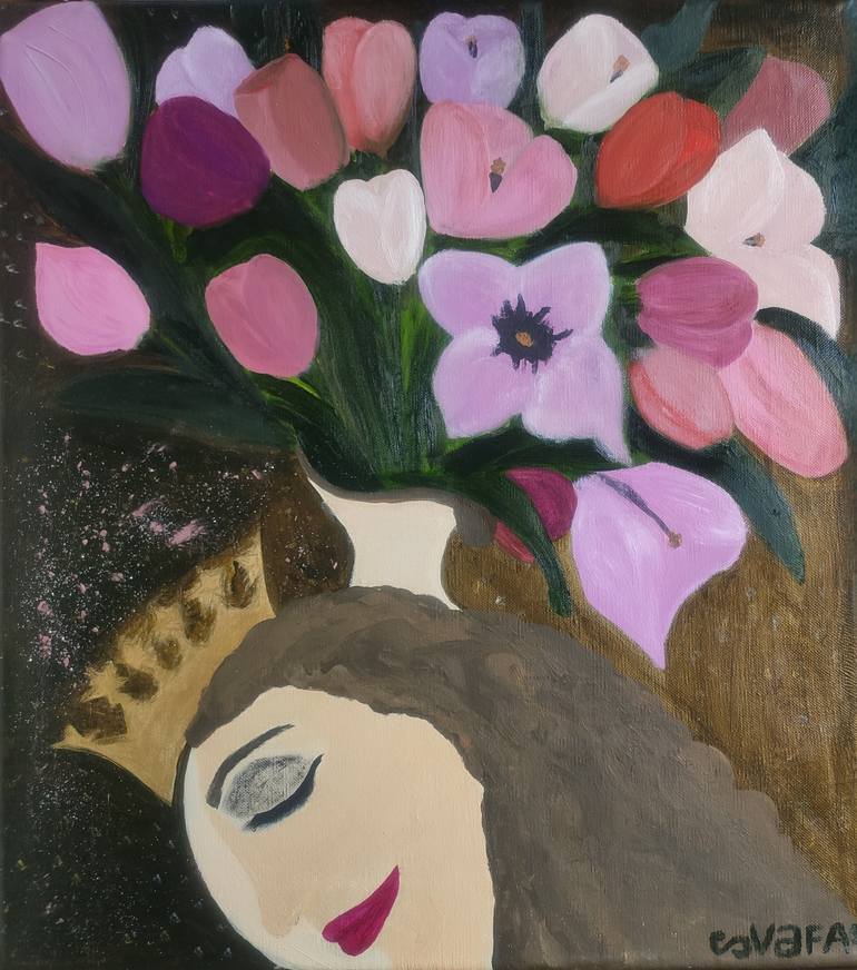 "Dream of a Princess" is a captivating figurative surrealist painting that invites viewers into a tranquil, dreamlike realm where imagination and serenity intertwine. The central figure is a delicate woman depicted in profile, her skin rendered in a soft, neutral tone that exudes calmness and grace....