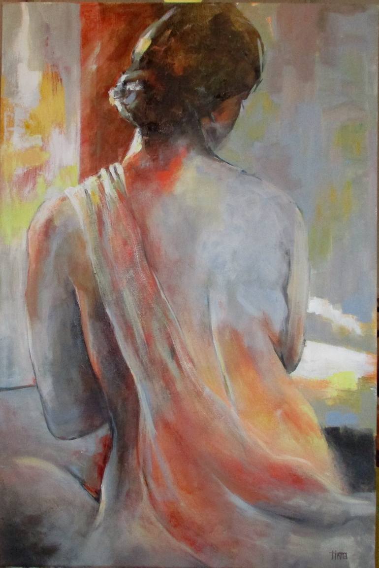 Life drawing with a model is my favourite part of creating art. This painting done from one of the sessions. Moved away from realistic flesh tones as my current palette is warms with greys.