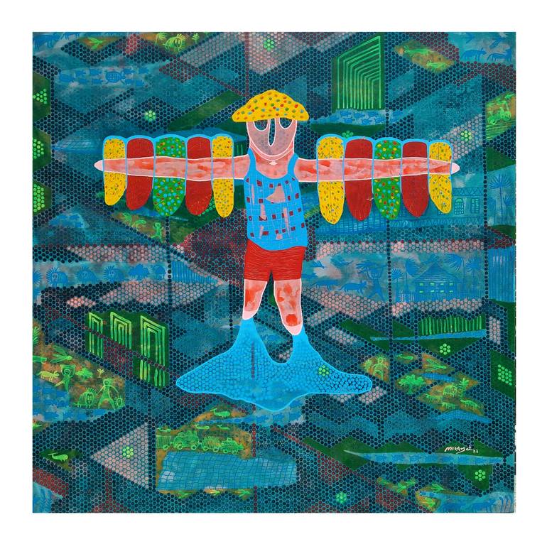 Born in 1986 and raised in the serene countryside of Rajasthan, India, I Lakhan Singh Jat, am a visual artist, known for vivid and emotionally resonant depictions of various forms of life events, set against rural backdrops.After completing MFA in 2009 from Rajasthan School of Art, in Jaipur, I started working as a freelance artist and exhibited my paintings in many parts of India. Educated at the Rajasthan School of Art in Jaipur, I have always tried to fuse the traditional Indian art forms with contemporary techniques. My paintings generally feature rural landscapes, dotted with traditional huts, undulating fields, serving as a backdrop to the human stories I portray. My journey into art began in the lush fields and vibrant surroundings of my hometown, where I was deeply inspired by the spectrum of emotions and interactions within the close-knit community, a place where the rhythm of nature intertwines with the heartbeat of its people, I found myself captivated by the stories and experiences that unfolded in this bucolic setting. My works are a celebration of human connections, exploring the diverse facets of love from the innocent affection between childhood friends to the profound bond of elderly companions, infinite love, eternal relations etc. My canvases are alive with the rich colour of rural India, the fiery reds of traditional outfits, the deep blues of monsoon skies, and the golden hues of harvest fields. This vibrant palette is not just a visual choice but a metaphor for the intensity and variety of emotions in human relationships. With time and my life experiences my forms, backgrounds, figures, style keep evolving. I have worked on childhood memories, nature, virtual vs real world and more in my 20 years of art journey. Recently during a visit to [Name of the Place], I was captivated by a couple I observed. . Their unspoken bond, the subtlety of their interactions, and the way they seamlessly blended into the rustic surroundings sparked a profound inspiration in him. This encounter became the cornerstone of my artistic exploration, to portray the depth and diversity of love through his art. Also my figures are inspired by the style of clothing and headgear I saw in deities of a temple there. My art is a dialogue about the universal nature of love, transcending the rural-urban divide.