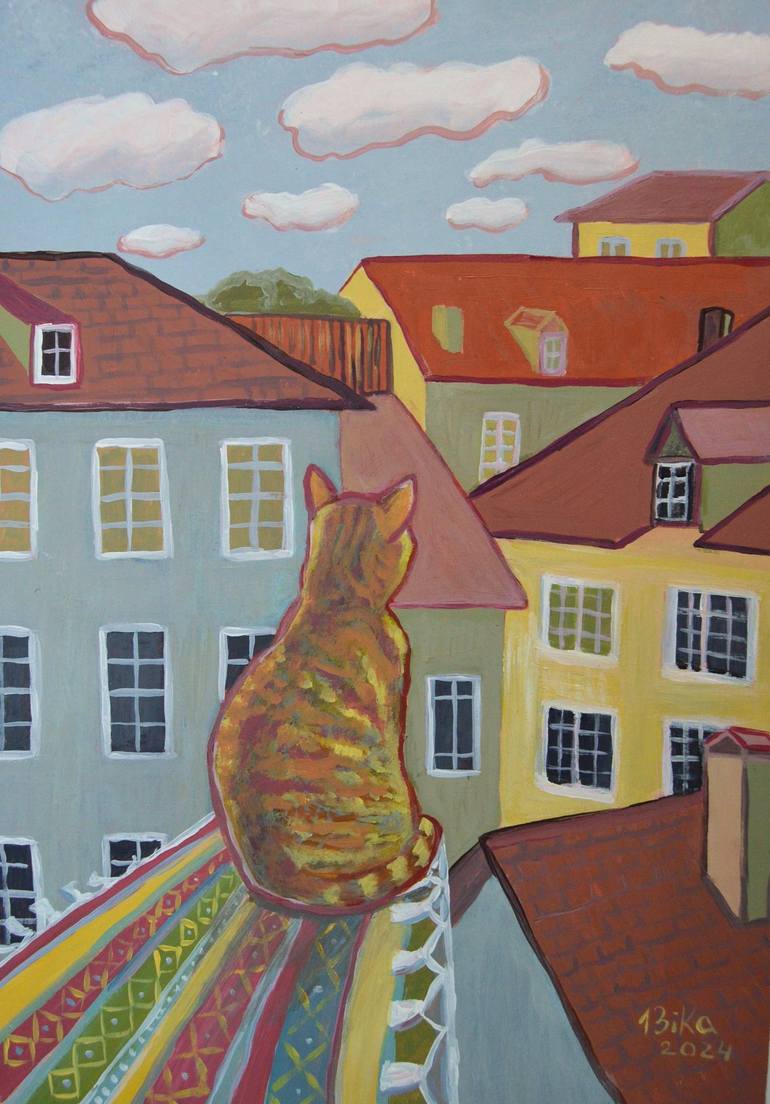 The inspiration for "Dreaming Cat" came from my fascination with the charming old homes and the serene, almost magical moments that can be found in urban landscapes. The curious cat perched on the roof symbolizes a sense of wonder and exploration. I aimed to capture a moment where the ordinary becom...