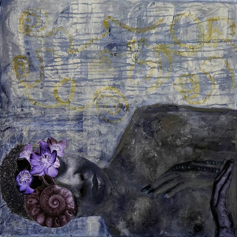 "Dreams Awake" is a mixed media painting that captures a nude black woman in a moment of quiet reflection, embracing calmness and tranquility. The contemporary painting style enhances the dreamy and moody atmosphere. The artwork evokes feelings of melancholy and resilience, portraying a nude figure...