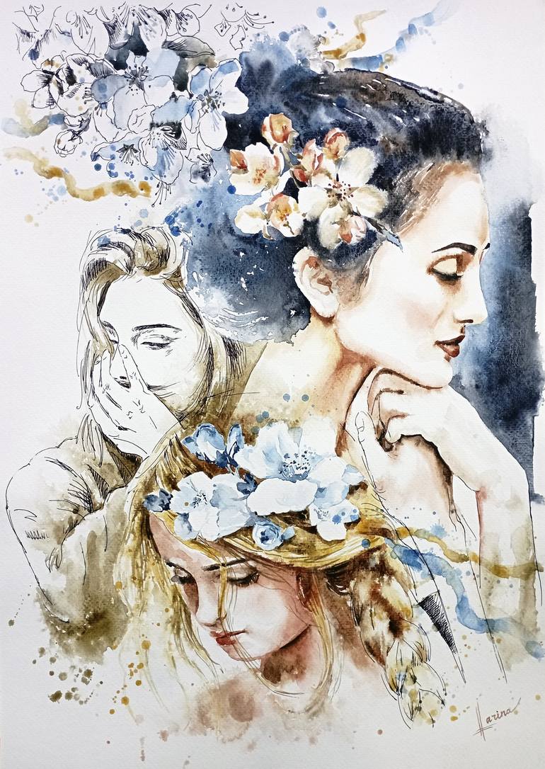 Hello ! I am an artist from Ukraine. I draw and painting from early childhood. Creativity - my whole life. In my work, I am inspired by the world around me: nature, the female image, the architecture of cities, the sea. I like to express my understanding of the world and what is happening through symbolism in paintings. In my paintings I often use stylization, ornaments, collages of figures, flowers, architecture. The female image is the most important for me in painting. In my work, I am inspired by the surrounding world: nature, the female image, the architecture of cities, the sea. I like to express my feelings and understanding through symbolism in the paintings. I love watercolor for its elusiveness, danger, unpredictability. I find these traits in the female image as well. Watercolors are delicate, unpredictable, you never know how the paint will lay on paper, how the colors will flow and mix. I love to create series of paintings that inspire me: woman, flowers, Renaissance, Impressionism, Art Nouveau. Watercolor is my whole life! It is light, airy, momentary - as the paint lay down, so it will be. Therefore, when you create a picture, you don’t fully know how it will end up. I often draw tender, vulnerable female images, as I myself have been subjected to sexism, humiliation, pressure due to the fact that I am a woman. I myself fought for my freedom of expression, I am proud that I am an artist. With my painting, I inspire people to search for beauty around us. I take part in art exhibitions. I never expect inspiration in my life! It is always with me. My motto is beauty, light, harmony in every work! I have been painting since birth. I studied for many years and still do not stop improving in painting. I always said that I would create under the bombs. And now this time has come. And yes, I continue to work. Only now I'm sitting with a brush, and inside I'm squeezing from anger, pain, resentment. Many of us fight in different ways: someone with a gun, someone with a word, someone with creativity. I loved symbolism and now I am trying to convey the bright image of Ukraine with gray, dark colors. .larina.art