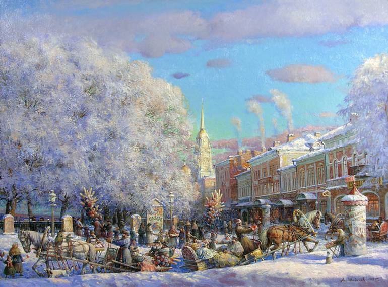 His Works is kept in RybinskArt Museum, Mologa memorial Museum, by Chairman Yaroslavlregion, by joint-stock company(JSC)Moskovit, by property (JSC)Rybinsk motors(NPO)Saturn,private(individual) assemblies of Moscow, Rybinsk, Saint-Petersburg, Yaroslavl, and as in Germany, USA, Finland, Sweden, Holland.Contact telephone in Rybinsk: +7(4855) 244-323, (MTS) +79108177547 e-mail: His(its) art aspires to the pacified harmony. In it is underlined horizontal constructions composition-rest and balance.The big color volumes sated with set of details and shades of color,give to his(its) pictures solemn sounding. The artist has got wide experience and skill during free copy practice in the Hermitage. Exact figure,restraint color a decision-tribute to art of old masters,to the academic traditions. Retrospective searches of the artist if they in any measure are present at city landscapes of old Rybinsk, do not be ar(carry) in themselves artificiality and meditation. It not melancholy on the past and not occult sessions. It them there is no mysticism and stylization under olden time. The artist aspires to transfer thet,in many respects for ever left, an atmosphere of a country town of Rybinsk when it was one of the most beautiful cities on Volga.