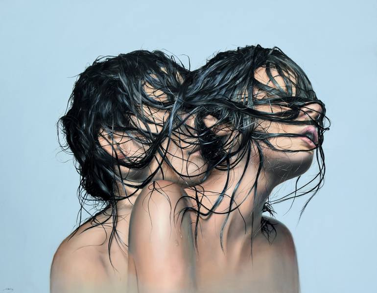 Story about the painting: "There are times when mutual love or attraction escalates to such an extent that they evoke an irresistible passion in us. In such moments, the physical connection with the partner is often accompanied by the fusion of two bodies and souls into one whole. We stop perceiving...