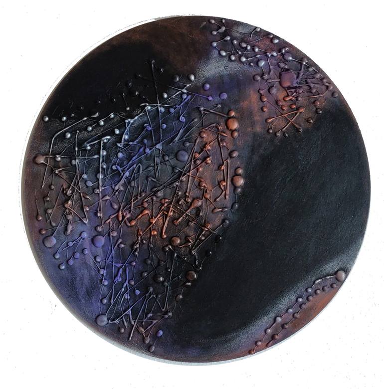 Abstract sculptural art with drops and threads embossed on wood panel. SIZE: 40,0 x 40,0 х 0,6 cm / 15.8 "x 15.8" х 0,2 "/ This is a artwork of art from the series “Thousand Eyes and Million Views”. Dublin is the soul and heart of Ireland. The city is like a candy bar, like the silvery surface of D...