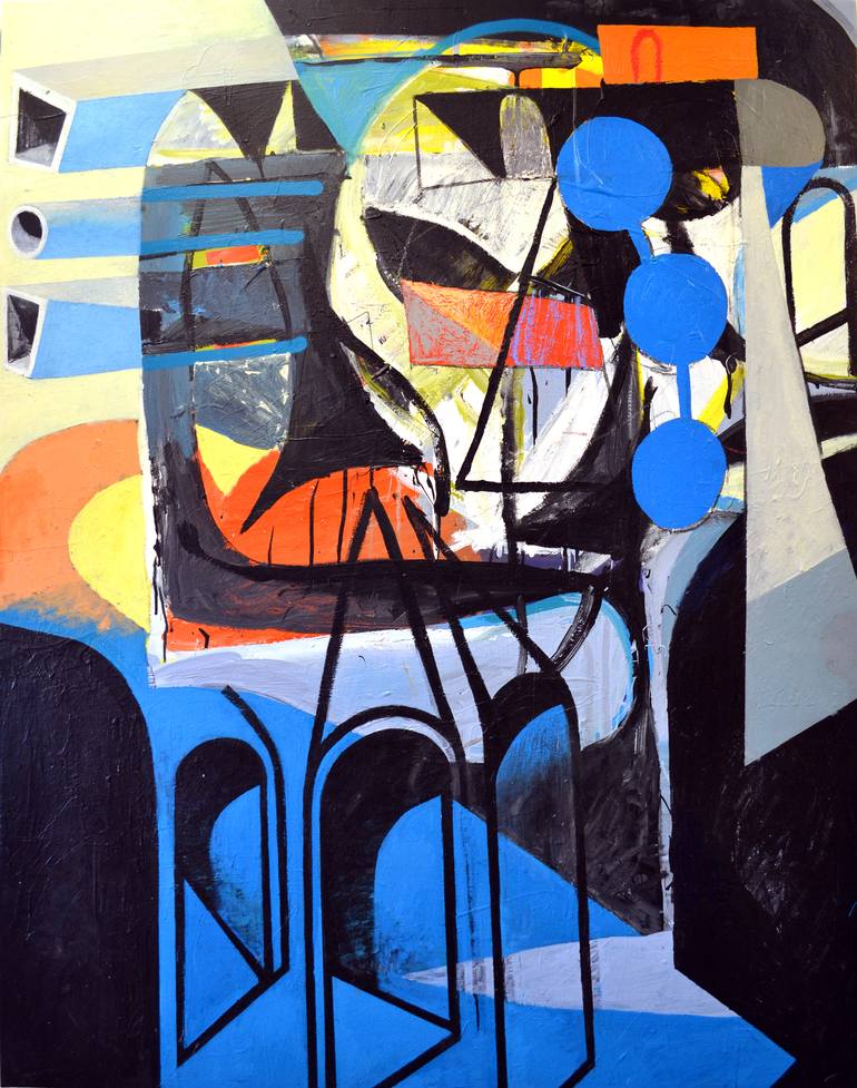 Mic Linder (b. 1988) is a painter and sculptor with a background in graffiti. As a teenager he painted comic book style inspired figures in pedestrian underpasses and abandoned places. Deeply interested in figuration, he started exploring ways of breaking up his compositions through the use of collage. The figures and milieus started getting more and more reduced to painterly gestures at this point. These gestures in turn get formalized and solid and translated into blocks and flat surfaces in the series that will later become Linder’s geometric works. In his works form, surface and color act as meaningful elements in an improvised, rhythmical and architectural display. His figurative background acts as a foundation that informs the direction of the abstractions. By deriving principles of composition and harmonious/disharmonious visual proportions from figuration and translating it to abstract scales Linder creates a feeling that one is looking at something familiar. This state of ”almost-recognition” makes his work oscillate between the silly and the monumental, between playful and serious, between the physical and the metaphysical. It ́s the painterly equivalent of having something on the tip of one’s tongue and if one were just able to make a little more of an effort... one would find the answer. It’s the known but not quite remembered.