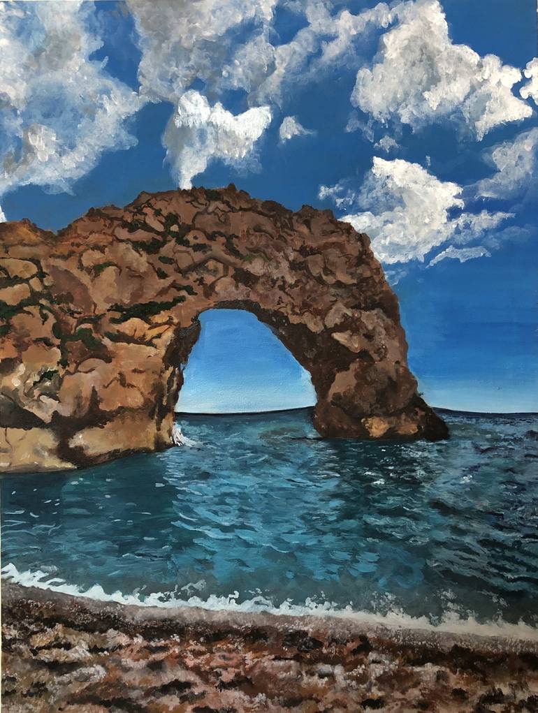 This painting captures the breathtaking beauty of Durdle Door, a natural limestone arch nestled along the Jurassic Coast in Dorset, UK. Inspired by one of the most enchanting beaches I visited during my trip to the UK, this artwork is a heartfelt attempt to preserve its splendor forever on canvas. E...