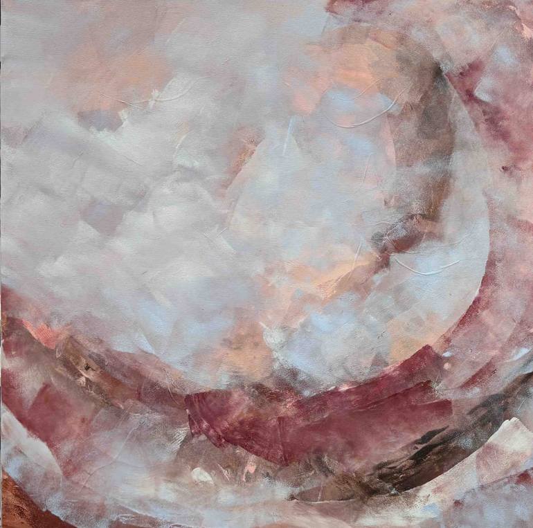 This piece captures the delicate balance between softness and strength. Hazy layers of dusty rose, deep wine and clouded blues create a moody yet soothing atmosphere. 90cm (W) x 90cm (H) x 1.5cm (D) This artwork ships rolled in a tube. Acrylic on canvas, signed on the back. Free shipping Austral...