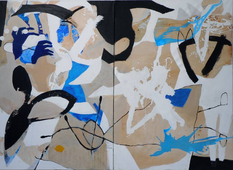 Diptych - Acrylic painting on Canvas Title: " Abstract Painting - snow white unconscious when it saw the pack " Hight : 62.99 - Width :86.61 / 220 x 160 cm Two pieces each : 62.99` x 43.30` x 1.57 inches / 160 x 110 cm Medium: Acrylics on streched canvas - ready to hang Painting is Signed - certif...