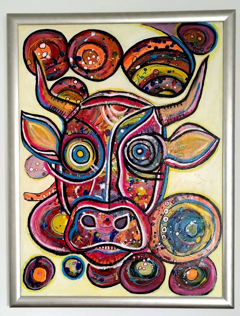 „El Toro Bizco” Akryl na płótnie, 2025 W obrazie „El Toro Bizco” artysta ukazuje byka jako eksplozję koloru, formy i energii. Centralna postać byka wypełnia niemal całą przestrzeń płótna, patrząc na widza hipnotyzującym, zezowatym spojrzeniem. To spojrzenie – niepokojące i zarazem intrygujące – sta...