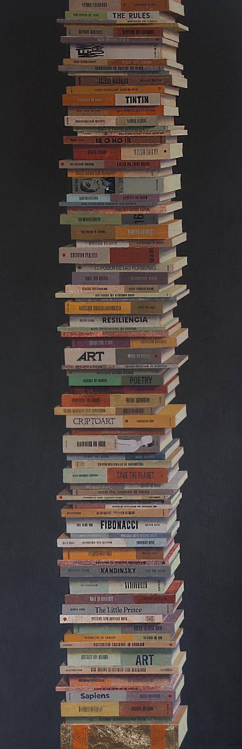 -Original work on canvas/ linen 180 x 60 x3 cm. -Books are for me an object of desire. I am attracted by their content, their stories, and especially as an object. I find it extremely beautiful -S/M -This painting includes a Certificate of Authenticity.