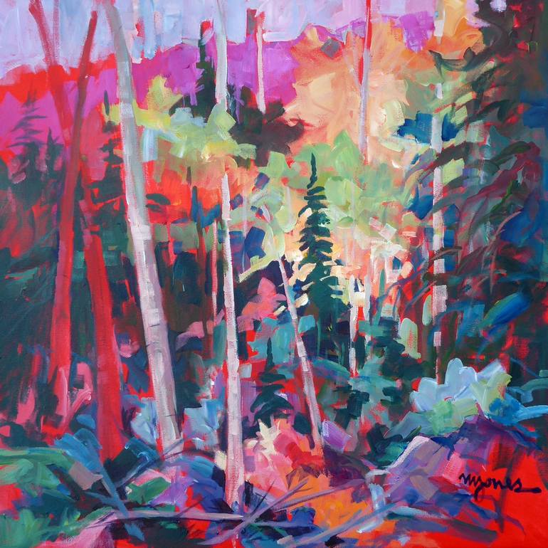 "EVENING GLOW" is an original 24 x 24" acrylic painting by Micheal W. Jones. This lovely impressionist painting was created from sketches made on location using the finest pigments on acid free canvas, and will be shipped directly to your door from the artist's studio.