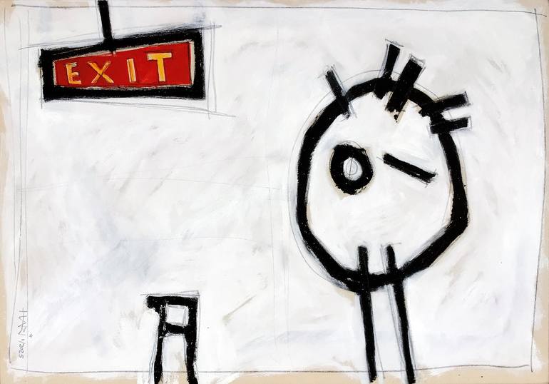 In my artwork I mix the rawness of Art Brut with the vibrant flair of Pop Art. By using oil and graphite I create a texture that is both rough and inviting. The central motif, a simplified, almost cartoonish head next to the glowing "EXIT" sign, plays with the concept of escape and self-discovery. T...