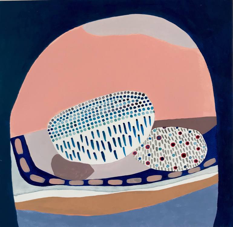 Abstract work on paper, unframed. Originally from South Africa, Ruth Le Roux’s work is inspired by the natural beauty of the Marin Headlands surrounding her new home in Sausalito. Carefully interpreted through bold, graphic shapes and colors, that inspiration becomes something else entirely differe...