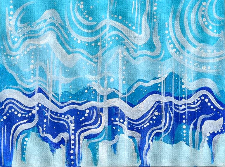 A beautiful development from Metamorphosis I. A collection that redefined the artist's style. This painting is part of Metamorphosis II collection and was created in monochrome blue acrylics, a very symbolic color in representing the colors of the ocean and sky. Repetitive line patterns emphasize ...