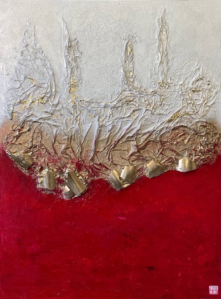José Sintnicolaas is a Dutch artist living in Tilburg, The Netherlands. After a fulfilling business career in recruitment she followed a classical art academy in Belgium and followed art art history courses at Tilburg University at the same time. When she moved to Shanghai in 2012 she started working full-time as a professional artist and her journey began. For 10 years has lived Shanghai, Singapore and Italy . Recently she returned to the Netherlands and draws inspiration from her experiences and the many other countries she has travelled to. During the years in Asia she became aware of the massive pollution, destruction and overconsumption on earth. The impact of her experiences resulted in developing her series ‘Earth’, a tribute to planet earth, being destroyed by humans rapidly. José works are mixed media and uses materials such as glass, sand, stones and paper. Often she creates a rough surface so the viewer can feel as one would experience in nature. She exhibited in China, Singapore, Hong Kong, Italy, Belgium and The Netherlands. Her artworks are in collections all over the world: Japan, China, Australia, USA, Canada, UK, Singapore, Belgium and the Netherlands. She is represented by Art Gallery Woussen in Knokke and Gallery LivingStone Art in Antwerp