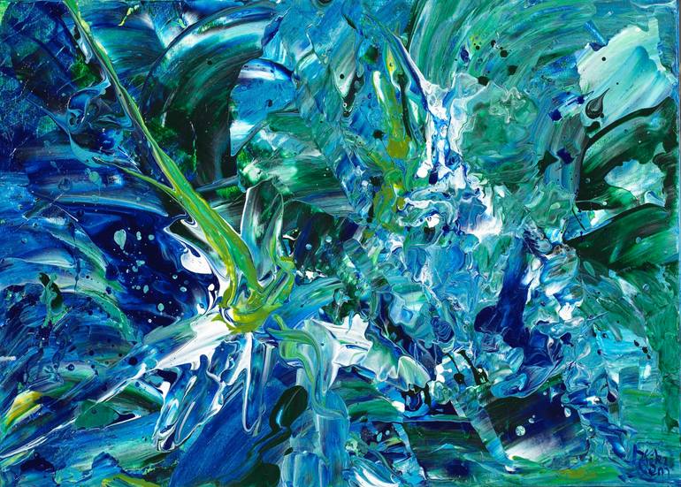 Acrylic painting on linen canvas I like to play between the figurative and the abstract... it is not a pure abstraction but rather an interpretation of reality, an abstraction born from an emotion... to show, to let the power of the ocean be felt, its beauty... its changing colors, a ray or a sunse...