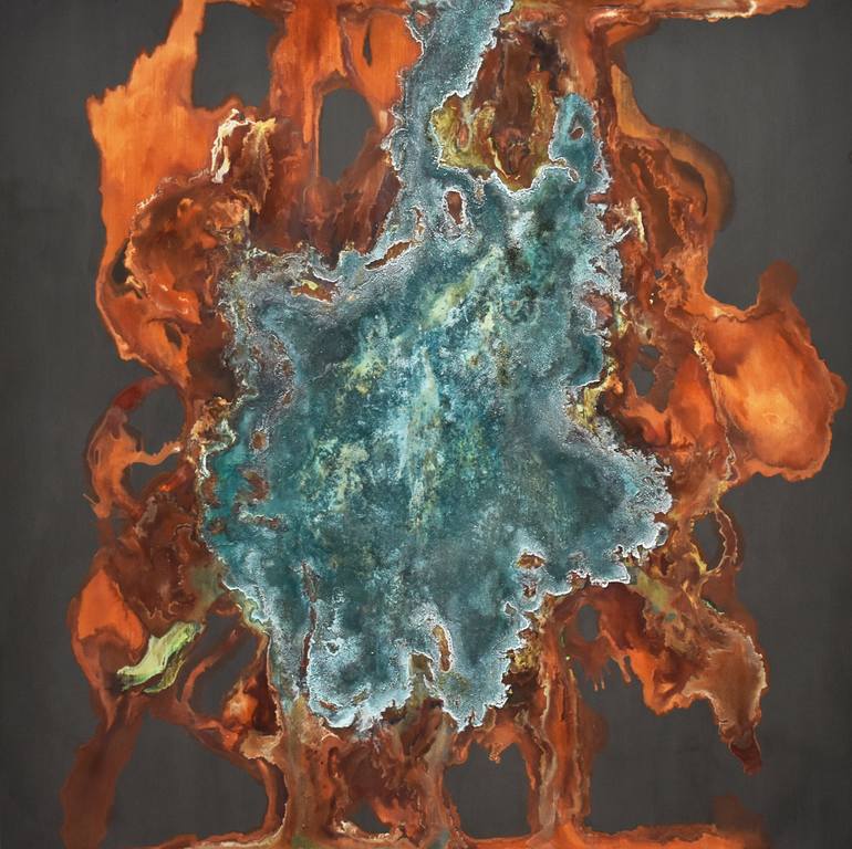 'Oceanus' explores deep time creation and alchemy. Inspired by the ancient Greek myth of Oceanus, a divinity of the stream believed to flow around the earth, the new collection of paintings examines the interplay between elements of fire, water, earth, and air.