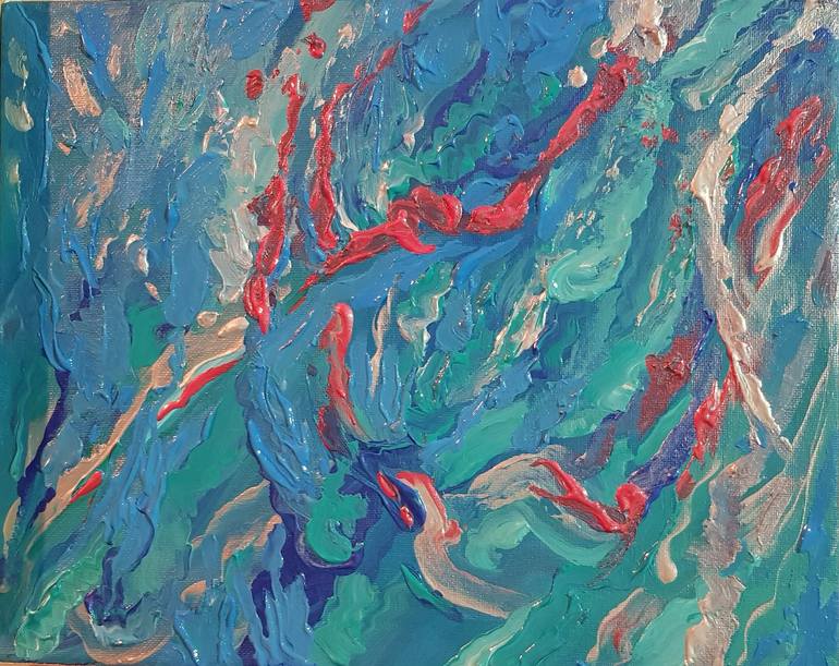 The water it's painting of the warm sea water of Egypt. This abstraction is my inspiration from the most unusual water in the world, with the great beauty of corals.