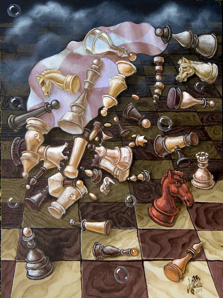 Viсtor Molev (Canada) "Einstein's Chess" 2022 23x30cm oil on wood. Pareidolia - the so-called "sensory illusions of additions" is the formation of illusory images based on real objects. Canadian artist and storyteller Viсtor Molev uses this feature of our brain to create his works from a large serie...