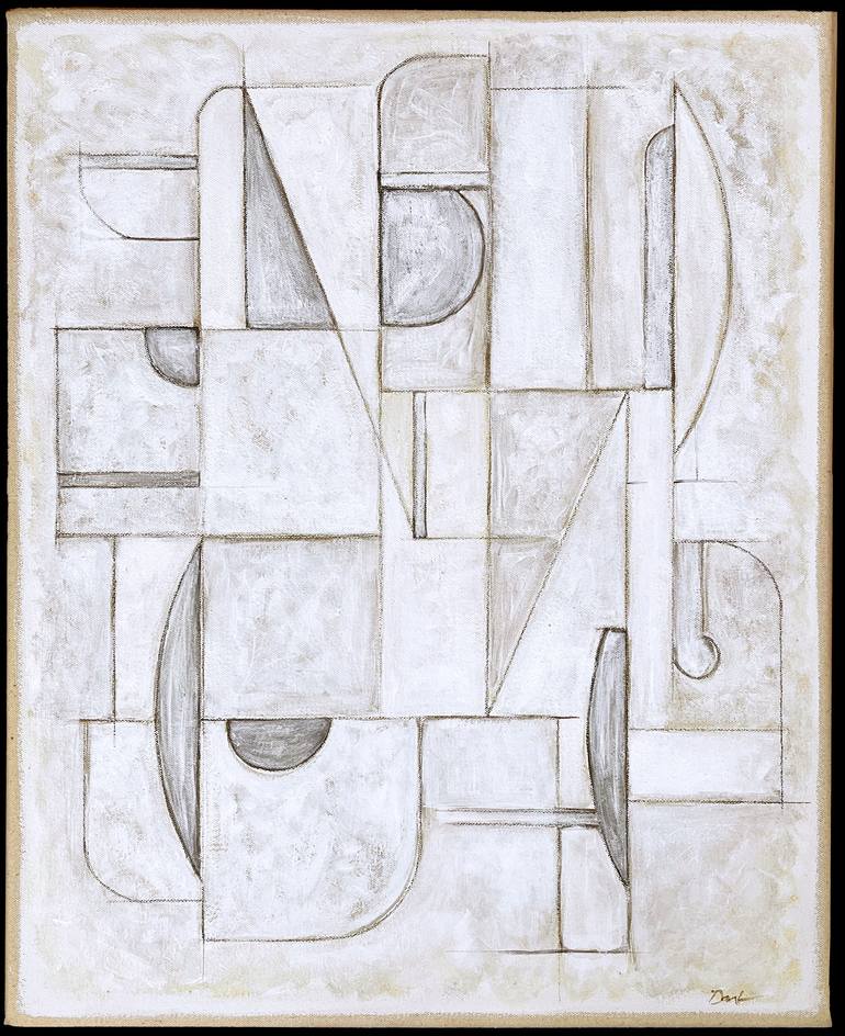 My collage material comes from mid-century magazines and found papers which I paint. As the collage takes shape, additional paint or markings are added to enhance certain elements. I am intrigued by the possibilities of arrangement and structure. My paintings develop in the same fashion. There are rhythms; playing with the formal elements, exemplifying the beauty of shape, texture and color. The work infers architecture, landscape and sometimes music. The creation of the work is a straightforward process; paper forms are laid next to each other until there is unity. It is a practice of free-association and deep-rooted discovery.