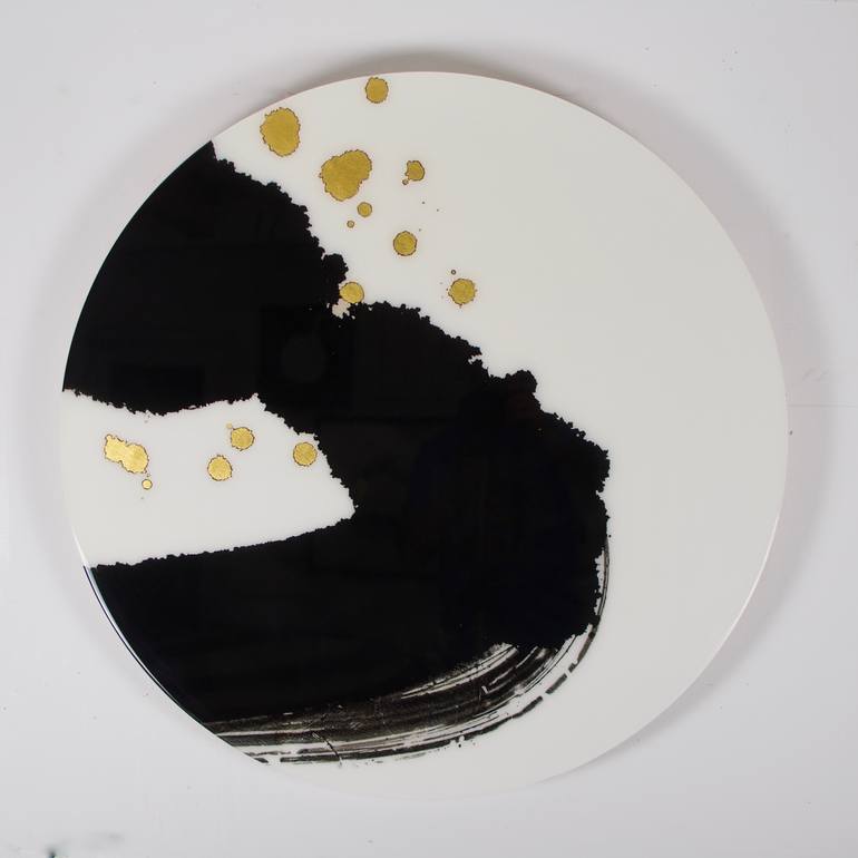 An original ink painting on Chinese mulberry paper, with a 24carat gold leaf embellishment. The painting has been traditionally mounted with archival wheat paste to a substrate of Fabriano cartridge (120gsm) on a circular birch panel. The egdes of the panel are bees wax polished wood and the paintin...