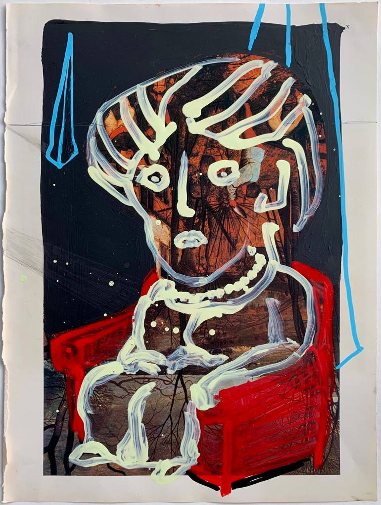 This piece was done using pencil, marker and acrílic paint. It’s part of a series called “Ejercicio”, that intuitively explores different formats and techniques, endulging the unconscious impulses of the moment.