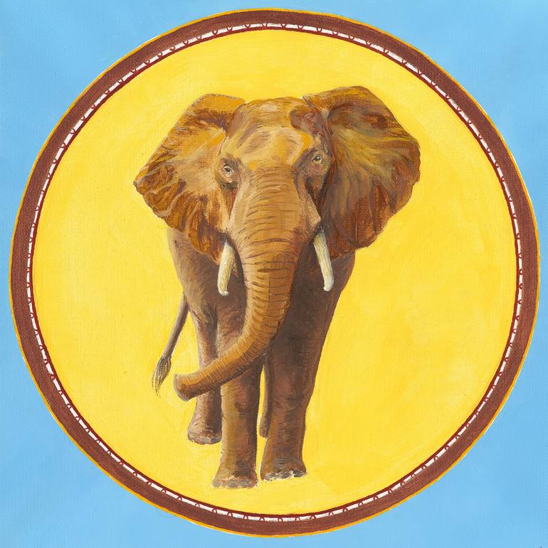 Oil painting of an Elephant, behind him is the radiant Sun, enveloping him. Elephants are truly amazing and majestic animals with deep feelings, exceptional memory, strong family and social values. They are gentle giants but can be very protective of their young. They develop deep bonds with each ...