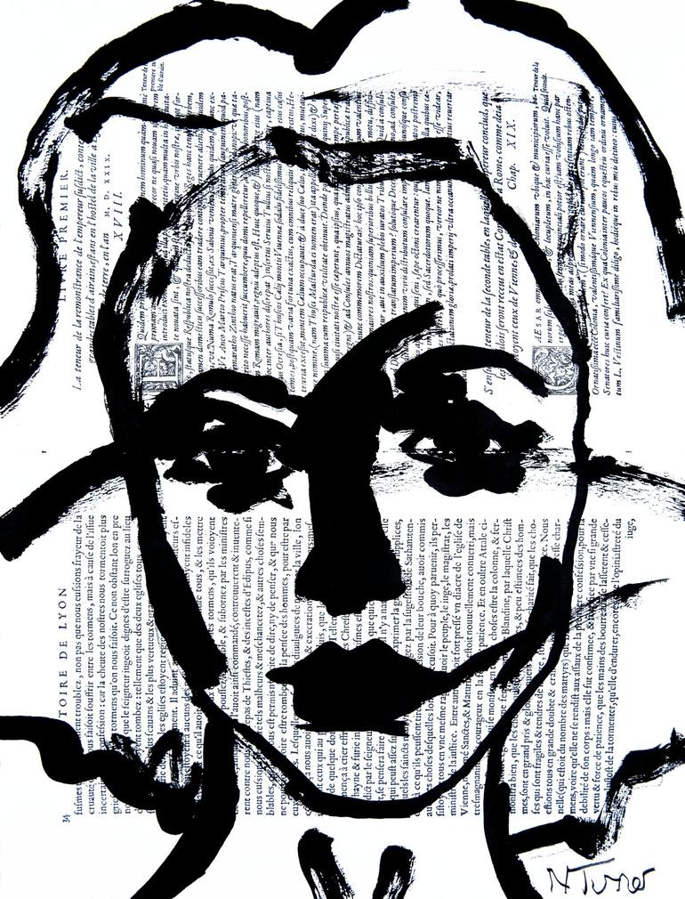 Indian ink and graphite on book paper 13 1/2 by 18 inches