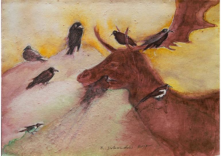 What/who inspired the work? Elk ...and... Birds (Aves), also known as avian dinosaurs, are a group of endothermic vertebrates, characterised by feathers, toothless beaked jaws, the laying of hard-shelled eggs, a high metabolic rate, a four-chambered heart, and a lightweight but strong skeleton. Bird...