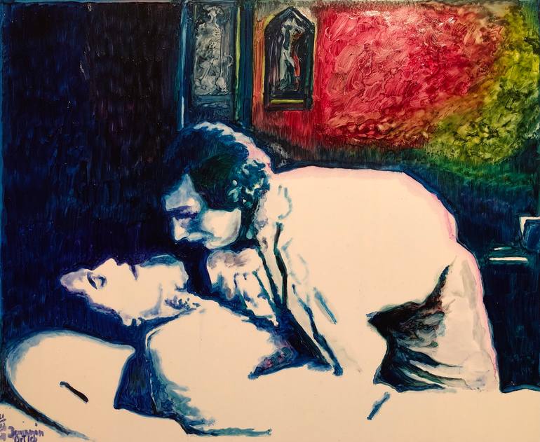 This painting belongs to a series a started recently dealing with black and white film stills from the classic silent movie "Nosferatu" by Friedrich Wilhem Murnau from 1922. Here we see Helen (actress: Greta Schroeder) who awaits Count Orlok (actor: Max Schreck) who will suck her blood. She sacrifie...